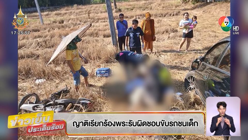 ข่าวเย็นประเด็นร้อน - แม่และญาติของ "น้องนุ่น" อายุ 14 ปี ที่ถูกพระขับรถชนได้รับบาดเจ็บในพื้นที่ จังหวัดอุดรธานี ออกมาเรียกร้องให้รับผิดชอบ หลังจากรับปากว่าจะชดใช้ แต่หายเข้ากรีบเมฆ