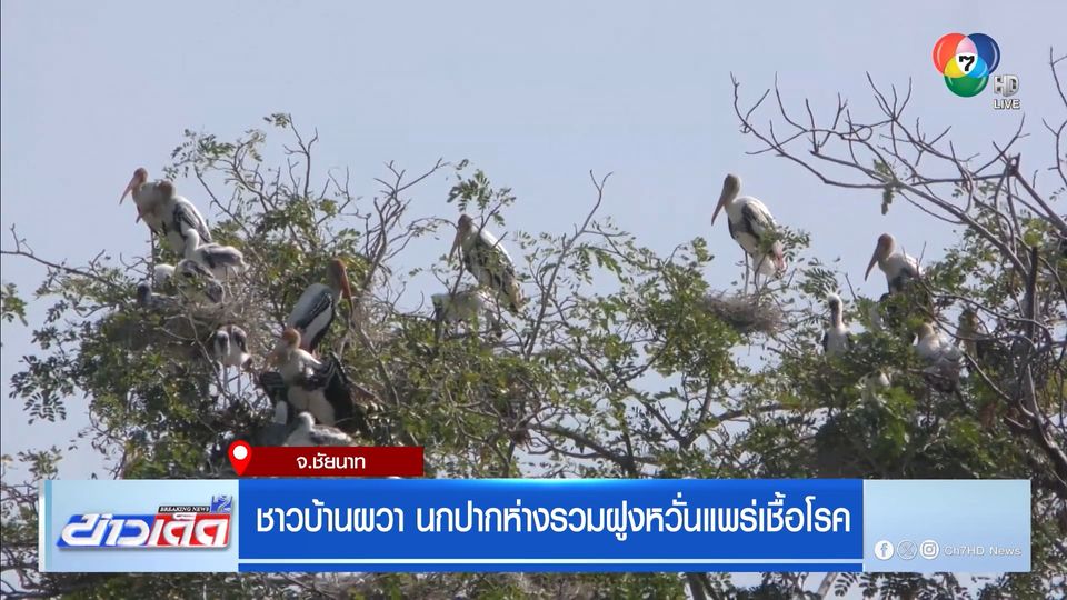 ข่าวเด็ด 7 สี - นกปากห่างที่บินวนอยู่เต็มท้องฟ้า ก่อนจะถลาลงมาเกาะอาศัยอยู่ที่ต้นไม้ แล้วก็ขับถ่ายไว้เต็มใต้ต้นไม้ ที่เกิดขึ้นที่บริเวณหลังวัดเขาท่าช้าง ตำบลเขาท่าพระ อำเภอเมือง จังหวัดชัยนาท อยู่นี้ ทำให้ชาวบ้านในชุมชนดังกล่าว ต่างอยู่กันอย่างหวาดผวา เข้าร้องเรียนผ่านสื่อมวลชน