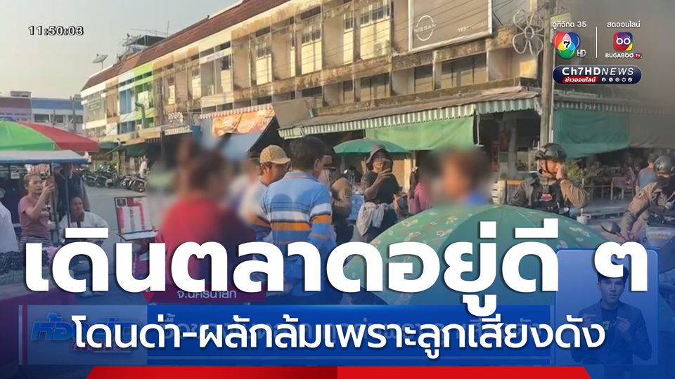 ห้องข่าวภาคเที่ยง - เหตุการณ์นี้เกิดขึ้นในตลาด ผู้หญิงคนหนึ่งพาลูกไปซื้อไส้กรอก ถูกผู้หญิงอีกคนเดินเข้ามาผลักจนล้ม แล้วด่าด้วยถ้อยคำรุนแรง กล่าวหาว่าเด็กเสียงดัง จะรุนแรงแค่ไหนไปชมจากคลิป