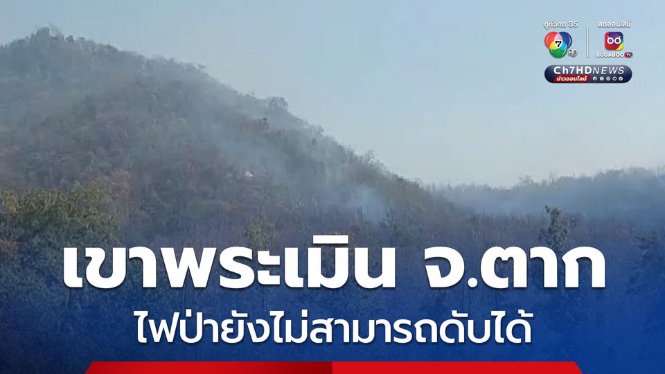 ไฟป่ายังคงเผาเขาพระเมิน จ.ตาก แหล่งหาเห็ดโคนของชาวบ้าน 3 ตำบล ชาวบ้านและอาสาสมัครและเจ้าหน้าที่ไฟป่า ช่วยกันดับไฟ โดยใช้ไม้ตบไฟที่ทำขึ้นเอง และถังน้ำสะพายหลัง เดินขึ้นภูเขาสูงชัน