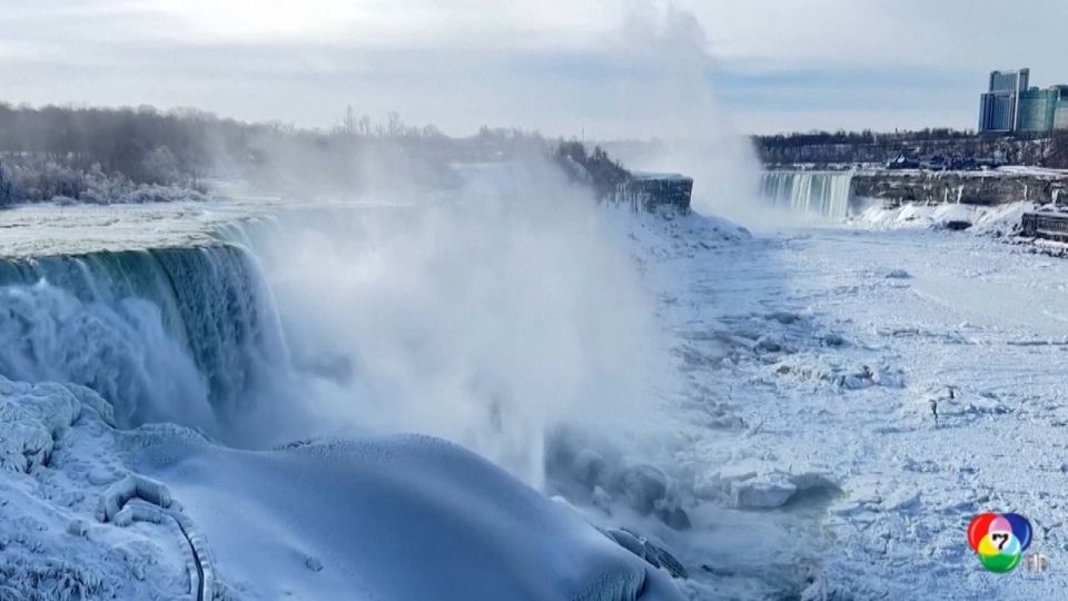 สภาพอากาศที่หนาวเย็นจัด จนหิมะตกหนัก ทำให้บริเวณรอบน้ำตกไนแอการา ในรัฐนิวยอร์ก ของสหรัฐฯ ปกคลุมไปด้วยหิมะและน้ำแข็ง รวมทั้งบริเวณผิวน้ำด้านล่างเริ่มกลายเป็นน้ำแข็งแล้วเช่นกัน ทำให้นักท่องเที่ยวรู้สึกประหลาดใจกับภาพที่เห็น เนื่องจากมันแตกต่างจากภาพที่เคยเห็นในช่วงฤดูร้อนมาก