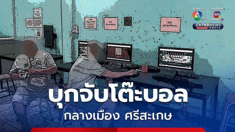 บุกจับโต๊ะบอล-พนันออนไลน์กลางเมือง ศรีสะเกษ เปิดเย้ยไม่สนกฎหมาย จับกุมนักพนัน 4 คน คนดูแล 2 คน