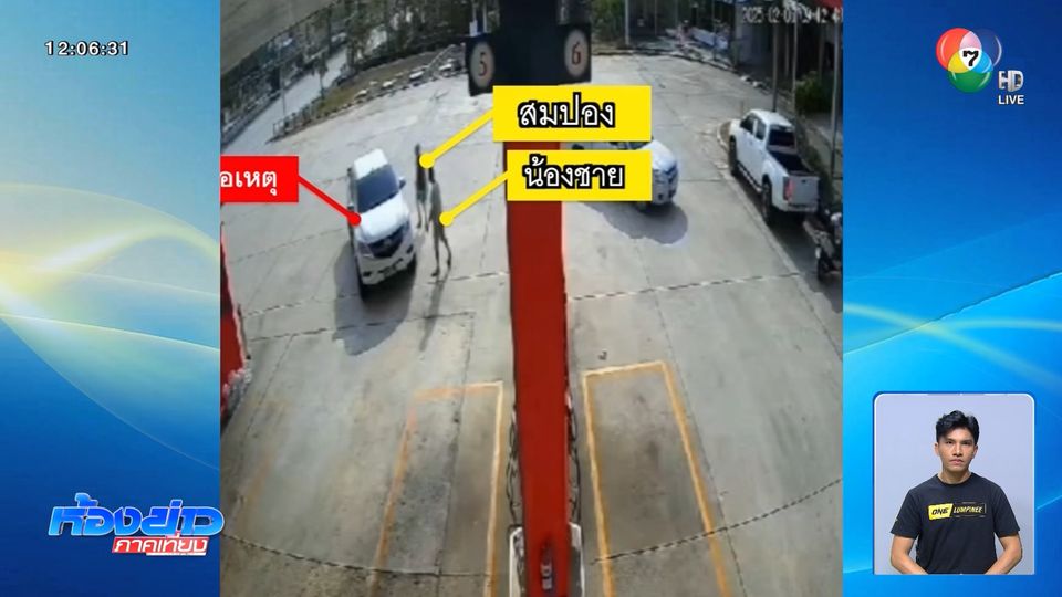 ส่วนสาเหตุมาจากเรื่องอะไร มาดูภาพวงจรปิด อีกมุมหนึ่งที่ติดตั้งไว้ริมถนน ก่อนถึงปั๊มน้ำมัน จะเห็นรถลุงสมปองเบี่ยงเข้าช่องทางซ้าย ดูเหมือนปาดหน้าชายที่ขับรถกระบะ ทำให้เกิดความไม่พอใจขับตามเข้าไปแล้วก็เกิดเหตุขึ้น