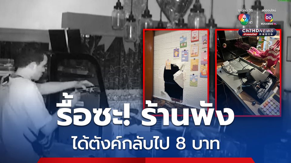 เจ้าของร้านกาแฟ สุดเซ็ง! หลังโจรกระจอก ทุบผนังร้าน มุดเข้ามารื้อทรัพย์สินเสียหาย ได้เงินติดมือกลับไป 8 บาท จ.นนทบุรี