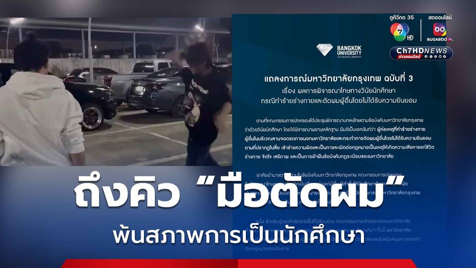 ม.กรุงเทพ ออกแถลงการณ์ฉบับที่ 3 ลงโทษ "มือตัดผม" แก๊งรุ่นพี่สาดน้ำซุป โดยมีคำสั่งพ้นสภาพการเป็นนักศึกษา และจำหน่ายชื่อออกจากทะเบียนนักศึกษาของมหาวิทยาลัย