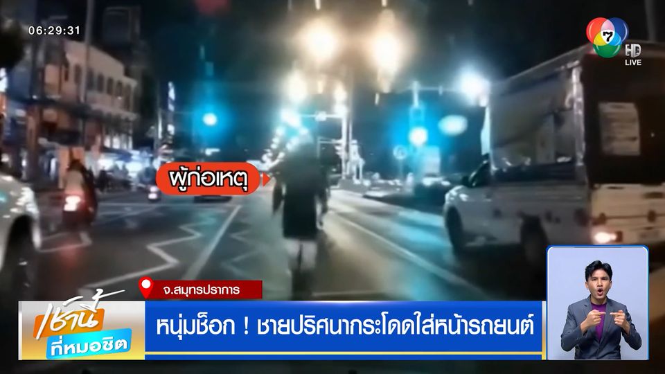 เช้านี้ที่หมอชิต - หนุ่มพนักงานเทศบาลตกใจแทบช็อก กำลังขับรถยนต์พาแฟนกลับที่พัก อยู่ ๆ มีชายปริศนากระโดดใส่หน้ารถยนต์