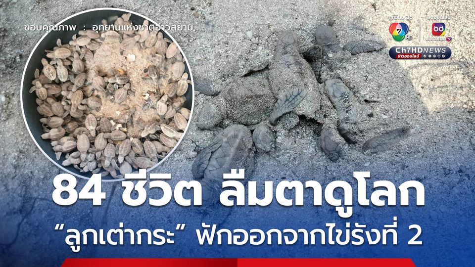 ลูกเต่ากระ 84 ตัว ฟักออกจากไข่ จากไข่ทั้งหมด 162 ฟอง โดยรังนี้แม่เต่าขึ้นวางไข่ไว้ตั้งแต่ 6 ธันวาคม 2567 ที่อุทยานแห่งชาติอ่าวสยาม(เตรียมการ) จ.ประจวบคีรีขันธ์
