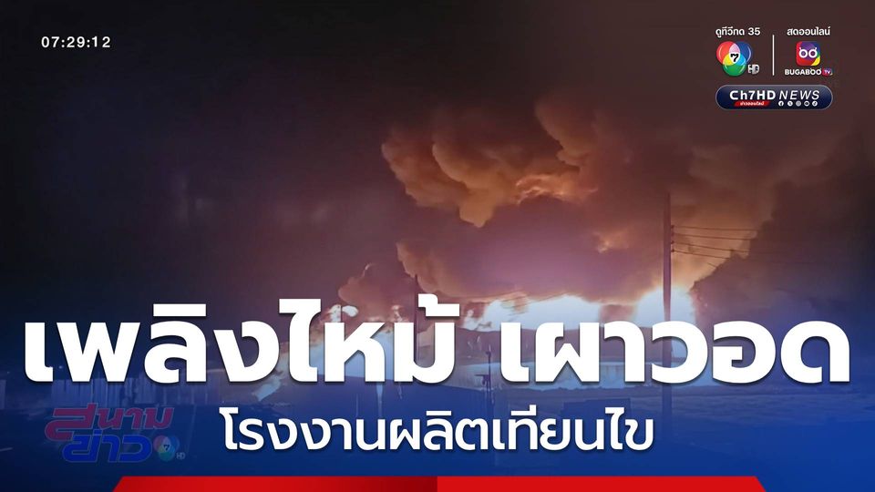 สนามข่าว 7 สี - เพลิงไหม้โรงงานผลิตเทียนไขที่ จังหวัดราชบุรี เหตุเกิดตั้งแต่ช่วง 20.00 น. เมื่อวาน มีอาคารถูกเผาวอดแล้ว 4 อาคาร