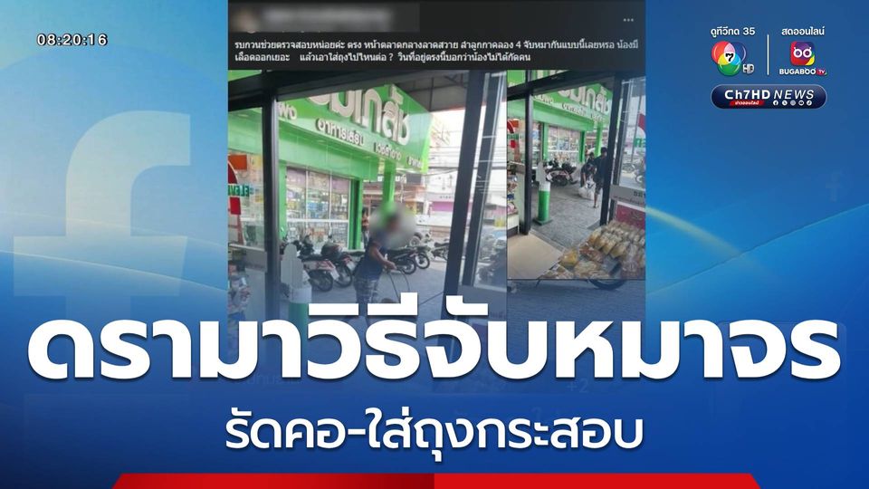 สนามข่าว 7 สี - เหตุการณ์นี้ ใครที่เป็นทาสหมาต้องสะเทือนใจ จนอาจทนดูไม่ได้ หลังมีคลิปว่อนโซเชียล ภาพจับน้องหมาจรด้วยวิธีที่ไม่เหมาะสม ใช้เหล็กแท่งผูกบ่วงคล้องรัดคอน้องหมา เท่านั้นไม่พอ ยังจับยัดใส่ถุงกระสอบมัดปากถุง ก่อนนำไปปล่อย