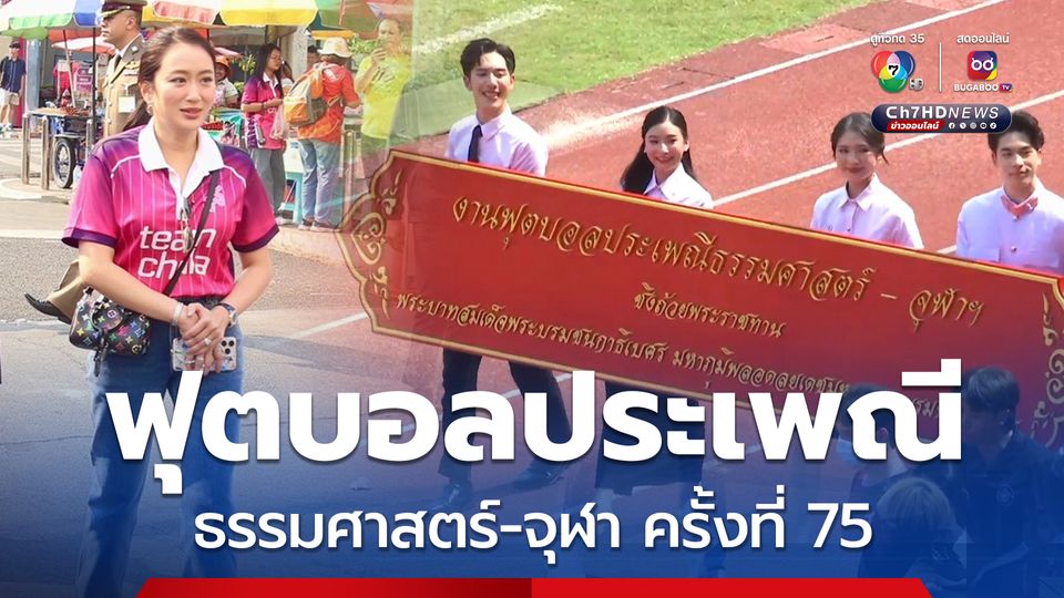 วันนี้ (15 ก.พ.68) บรรยากาศที่สนามกีฬาแห่งชาติ หรือ สนามศุภาลัย งานฟุตบอลประเพณีธรรมศาสตร์-จุฬาฯ ครั้งที่ 75 ซึ่งเป็นการกลับมาจัดการแข่งขันในรอบ 5 ปี หลังห่างหายไปตั้งแต่ปี 2563 เนื่องจากสถานการณ์โควิด-19 ซึ่งปีนี้มหาวิทยาลัยธรรมศาสตร์ เป็นเจ้าภาพ ภายใต้แนวคิด “Dawn of Memory ความทรงจำในวันใหม่” ซึ่งรวมถึงกิจกรรมล้อการเมืองด้วย ส่วนจุฬาลงกรณ์มหาวิทยาลัยนำเสนอในแนวคิด “The time of tapestry อดีต อนาคต ของปัจจุบัน”