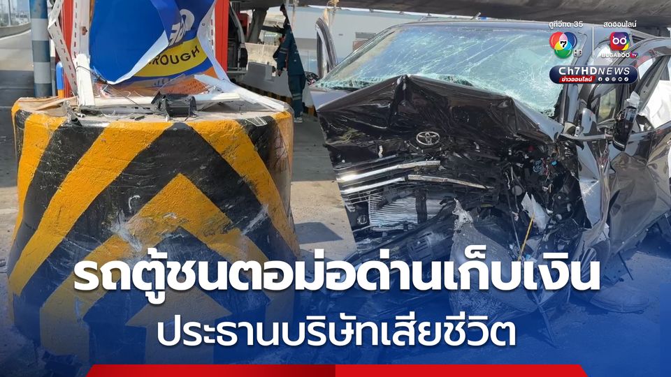 วงจรปิดจับภาพ รถตู้ซิ่งชนตอม่อด่านเก็บเงินทางด่วน ประธานบริษัทถูกอัดก๊อปปี้เสียชีวิต ตำรวจคาดคนขับหลับใน