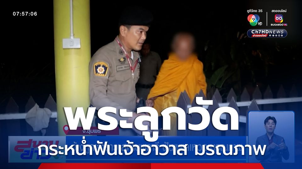 สนามข่าว 7 สี - เกิดเหตุนองเลือดในวัดแห่งหนึ่งที่จังหวัดชุมพร พระลูกวัดอ้างว่าสุดทน ถูกเจ้าอาวาสด่าบุพการี โมโหใช้มีดฟันหัวแบะได้รับบาดเจ็บสาหัส มรณภาพ
