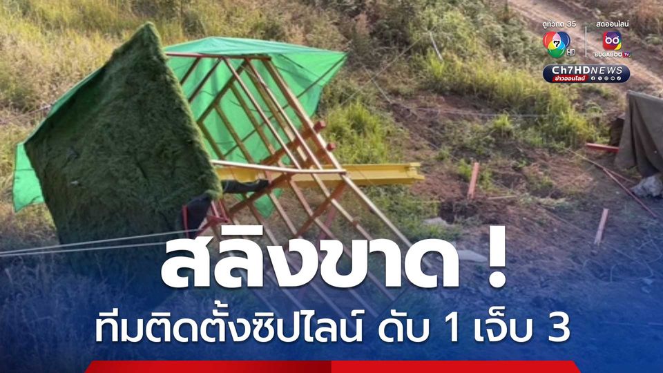 สลิงขาด! ทีมติดตั้งเครื่องเล่นซิปไลน์ร่วงกระแทกพื้น เสียชีวิต 1 บาดเจ็บ 3 เจ้าหน้าที่เข้าตรวจสอบ สั่งหยุดใช้ทันที