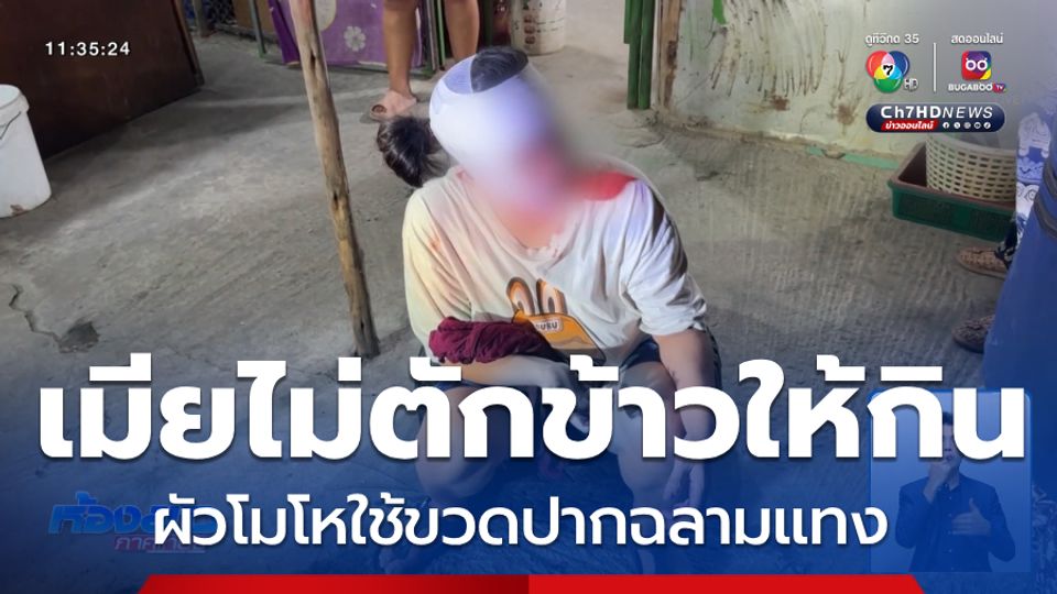 ห้องข่าวภาคเที่ยง - ผัวเมา โมโหเมียไม่ตักข้าวให้กิน คว้าขวดปากฉลามแทงกกหูเมียเลือดอาบ จนต้องวิ่งหนีตาย
