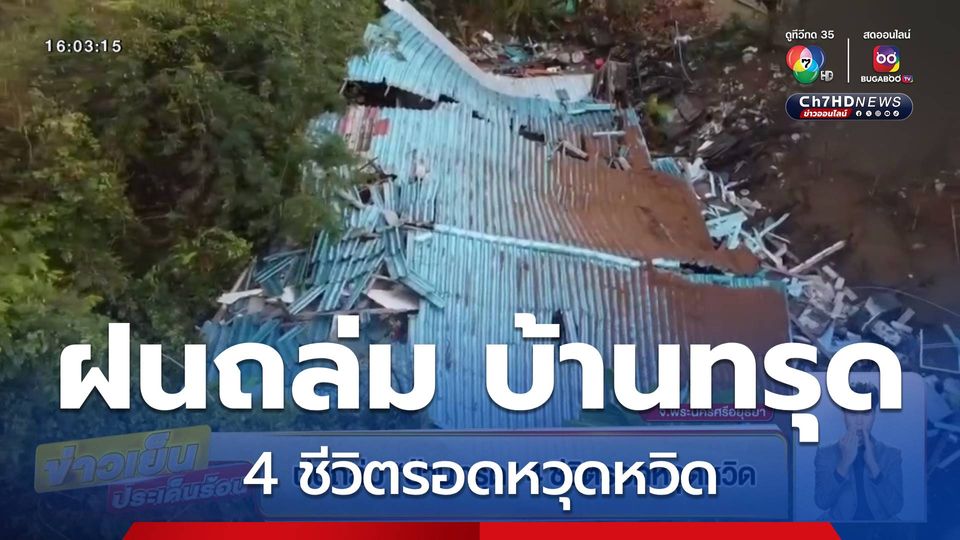 ฝนถล่ม บ้านทรุด 4 ชีวิตรอดหวุดหวิด