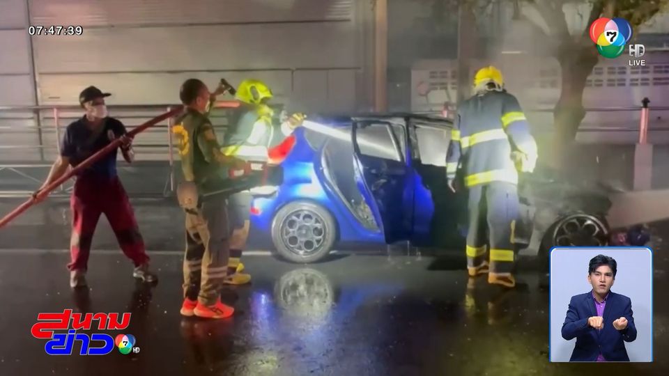 สนามข่าว 7 สี - สาวโรงงานเปิดประตูรถเก๋งหนีตาย หลังห้องเครื่องกระตุก ก่อนเพลิงลุกไหม้รถเสียหายทั้งคน