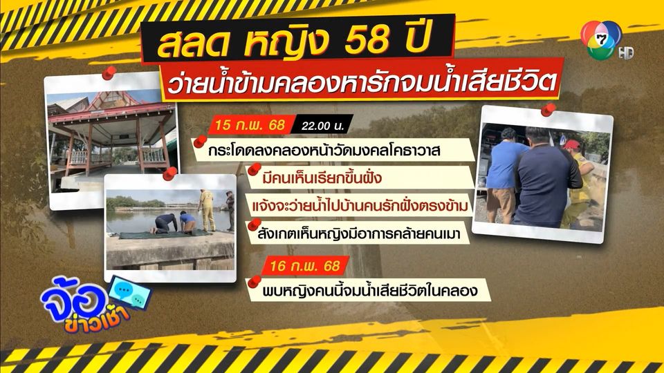 จ้อข่าวเช้า - รักข้ามคลอง หมดแรงจมน้ำเสียชีวิต