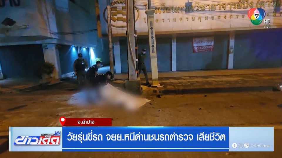 ข่าวเด็ด 7 สี - วัยรุ่น 2 คน ขี่รถจักรยานยนต์ หนีด่านตรวจเมาแล้วขับ เสียหลักพุ่งชนท้ายรถตราโล่ ตำรวจเสียชีวิต 1 คน