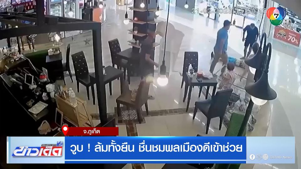 ข่าวเด็ด 7 สี - คลิปนาทีชีวิต ชายเดินอยู่ในห้างฯ ดัง จังหวัดภูเก็ต จู่ ๆ เกิดวูบ ล้มทั้งยืน พลเมืองดีเข้าช่วยเหลือนำตัวส่งโรงพยาบาล
