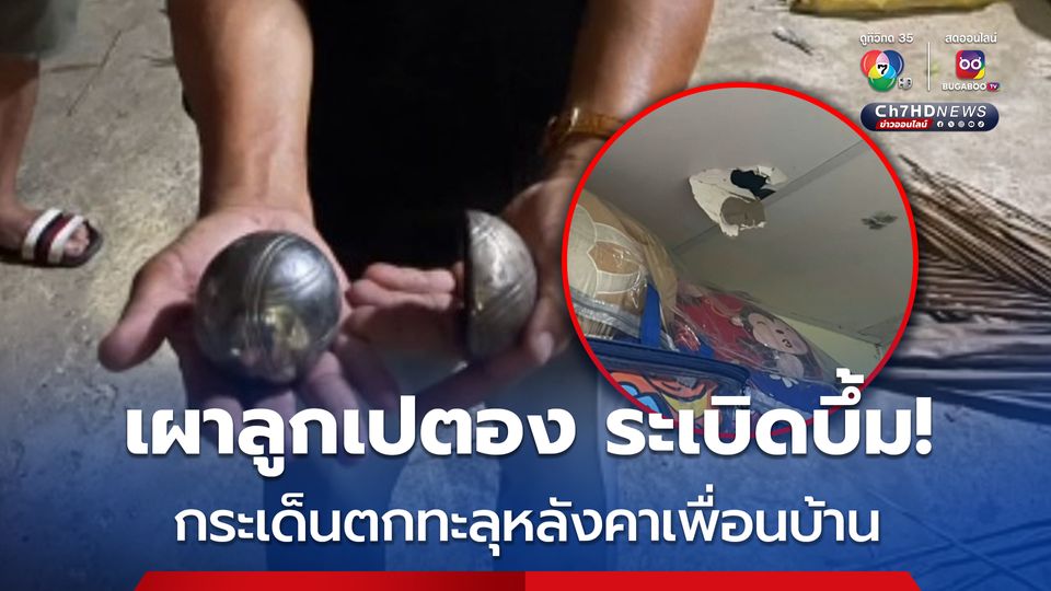 หนุ่มเอา “ลูกเปตอง” มาเผาไฟหวังกำจัดสนิม สุดท้ายระเบิด กระเด็นไปไกลกว่า 100 เมตร ตกทะลุหลังคาชาวบ้านเสียหาย