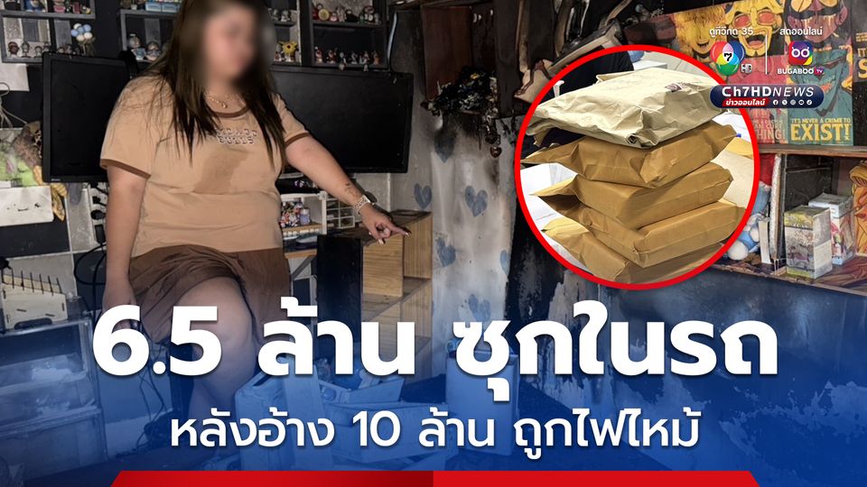 พบพิรุธ สาวอ้างไฟไหม้เงินสด 10 ล้านที่เก็บไว้หัวเตียงนอนในบ้าน ล่าสุดพบเงินสด รวม 6.5 ล้านบาท ซุกไว้ในรถยนต์ เบื้องต้นตำรวจกำลังตรวจสอบถึงที่มาของเงิน และสาเหตุของเพลิงไหม้ว่าเกิดจากสาเหตุใด