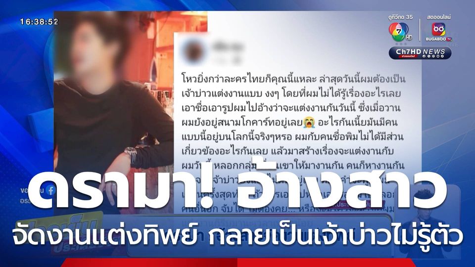 ข่าวเย็นประเด็นร้อน - หนุ่มถึงกับเหวอ จู่ ๆ กลายเป็นเจ้าบ่าวทิพย์ คนทักมาถามพิกัดงานแต่งงาน ทั้งที่ไม่ได้คบกับฝ่ายหญิง สุดท้ายหลอกคนมางานเก้อเพียบ เรื่องไม่จบแค่นั้น เพราะเหมือนจะกลายเป็นดรามาซ้อนดรามา เพราะตอนนี้หนุ่มเจ้าของโพสต์ถูกขุดคดีเก่าเมื่อปีที่แล้ว