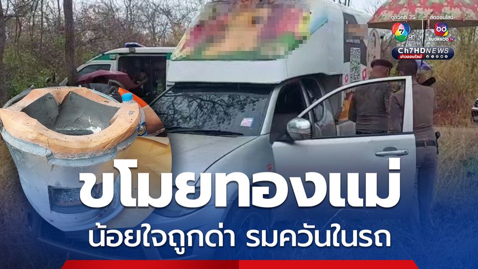 หนุ่มใหญ่รมควันตัวเองในรถ คาดน้อยใจถูกแม่ด่า หลังขโมยทองแม่ไปขายใช้หนี้ และส่งเสียเมียรัก ส่วนเงินค่าขนมที่เก็บจากร้านค้า นายจ้างเผยเหลือเพียง 100 บาท