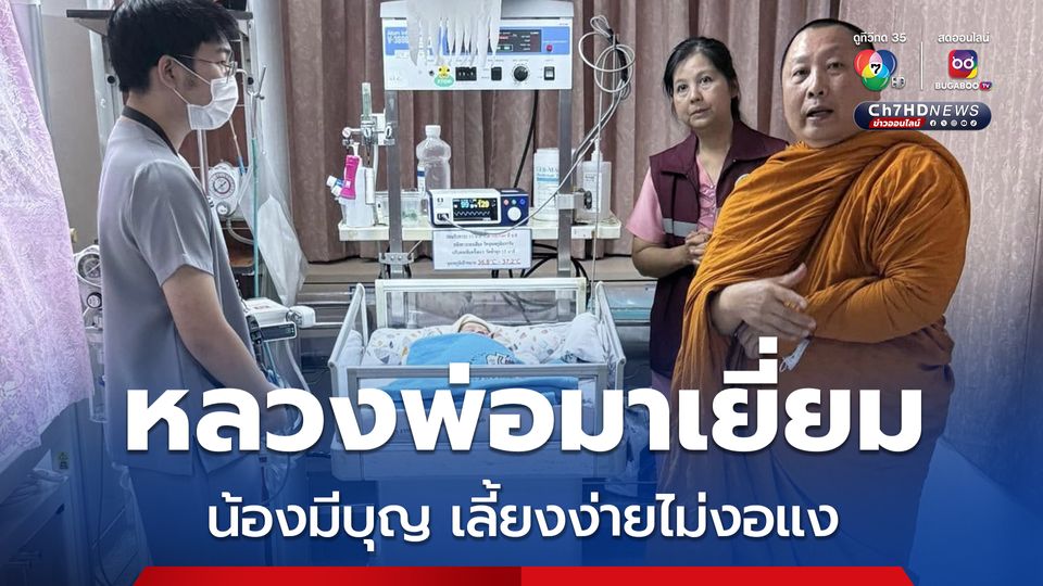 ความคืบหน้ากรณีน้องมีบุญ หลังตำรวจติดตามจนพบพ่อของเด็ก วันนี้ (26 ก.พ.68) พระราชวชิรประชานาถ เจ้าคณะจังหวัดฉะเชิงเทรา (ธ) และเจ้าอาวาสวัดสมานรัตนาราม ได้เดินทางมายังโรงพยาบาลพุทธโสธร เข้าเยี่ยมน้องมีบุญ ในห้องผู้ป่วยทารกแรกเกิด พบว่าน้องมีบุญ แข็งแรงดีมาก คุณหมอบอกเด็กเลี้ยงง่าย ไม่งอแง กินแล้วก็หลับปุ๋ย คาดว่า อีก 3-4 วันก็สามารถกลับบ้านได้แล้ว