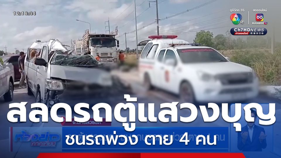 ห้องข่าวภาคเที่ยง - เกิดอุบัติเหตุสลดอีกแล้ว รถตู้แสวงบุญชนท้ายรถบรรทุกพ่วง ทำให้มีผู้เสียชีวิตทันที 4 คน บาดเจ็บอีก 5 คน