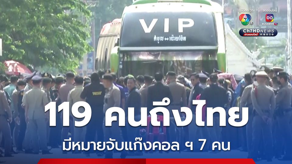 กัมพูชา ส่งตัวคนไทย 119 คน กลับประเทศ หลังถูกจับเกี่ยวคดีคดีอาชญากรรมข้ามชาติ ในนี้มี 7 คน มีหมายจับแก๊งคอลเซ็นเตอร์ และมีเยาวชน อายุ 17 ปี 4 คน จ่อฟันโทษหนักฐานอั้งยี่ซ่องโจร