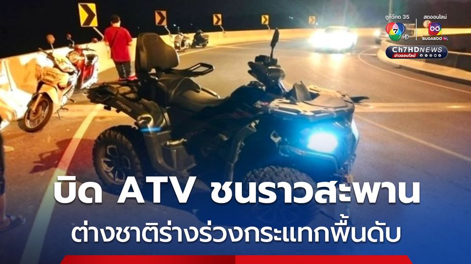 หนุ่มต่างชาติ ซิ่งรถ ATV เสียหลักแหกโค้งชนราวสะพานเกือกม้าความสูงประมาณ 5-7 เมตร ร่างร่วงกระแทกพื้น กะโหลกแตกเสียชีวิตคาที่ เจ้าหน้าที่เร่งประกาศตามหาญาติ