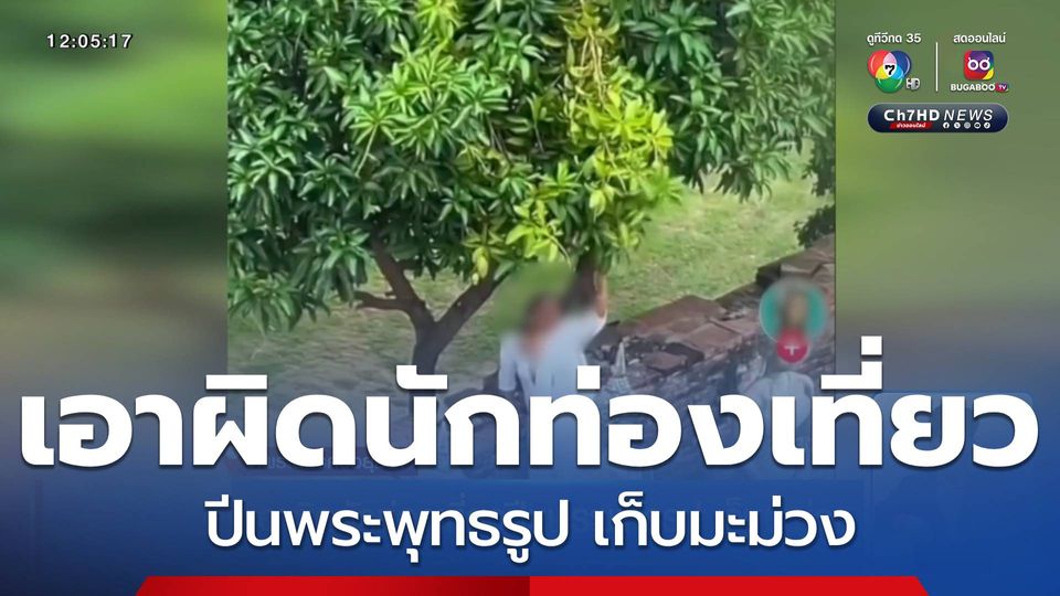ห้องข่าวภาคเที่ยง - หน่วยงานที่เกี่ยวข้อง เตรียมเข้าแจ้งความเอาผิดนักท่องเที่ยวชาวต่างชาติ ที่ปีนป่ายพระพุทธรูป ขึ้นไปเก็บมะม่วง ที่วัดใหญ่ชัยมงคล เข้าข่ายทำลายโบราณสถาน และเป็นการกระทำที่ชาวพุทธ รับไม่ได้