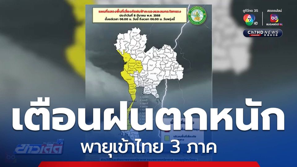 ข่าวเด็ด 7 สี - กรมอุตุนิยมวิทยา ประกาศเตือนฝนตกหนัก 40% ของพื้นที่ พายุฤดูร้อน กระทบ 3 ภาค ภาคเหนือ ภาคกลาง และภาคใต้