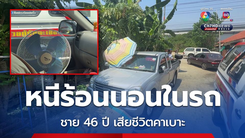 อากาศในห้องมันร้อน ชายอายุ 46 ปี ลากปลั๊กพ่วงเสียบพัดลมนอนในรถ แม่เรียกกินข้าว ไม่มีเสียงตอบรับ ออกมาดูพบลูกเสียชีวิตคารถ