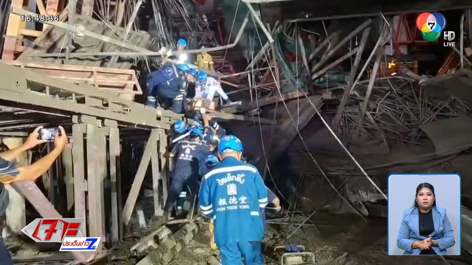 คานเหล็ก โครงเหล็ก รวมถึงปูนซีเมนต์นับร้อยตัน ถล่มใส่ร่างของคนงานก่อสร้าง ที่ทำงานอยู่ด้านล่าง คนงานที่ทำงานอยู่ด้านบนร่วงหล่นลงมา บางส่วนก็ติดค้างอยู่ หน่วยกู้ภัยหลายมูลนิธิ เร่งช่วยเหลือกันอย่างโกลาหล