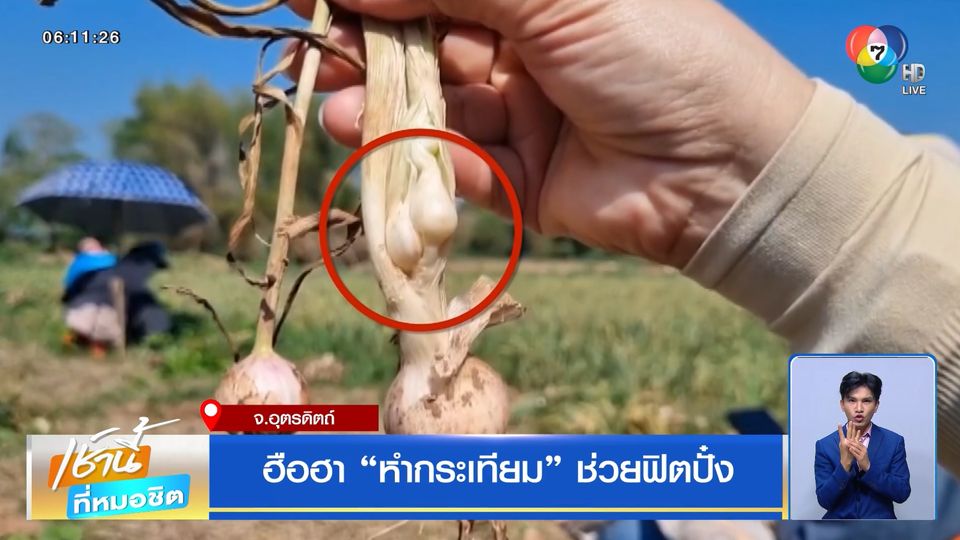เช้านี้ที่หมอชิต - มาที่เรื่องฮือฮากับ "ขุมพลังมหัศจรรย์" ทั้งกระเทียมโทน และหำกระเทียม ! ของไทยแท้ ๆ สายพันธุ์น้ำปาด จังหวัดอุตรดิตถ์ นอกจากจะสร้างรายได้ให้คนปลูกกระเทียมขายแล้ว สรรพคุณหายากที่ช่วยคนกินเพิ่ม โดยเฉพาะฝ่ายชาย แว่ว ๆ ว่าทำให้แรงดี ฟิตปั๋ง เตะปี๊บดังแน่ จะจริงหรือไม่ เรามีเฉลยให้ทราบกัน