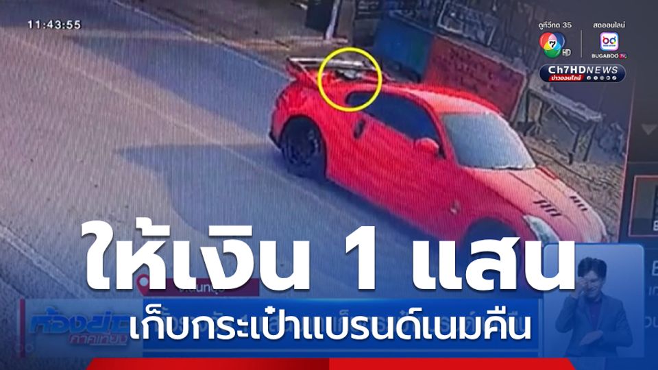 ห้องข่าวภาคเที่ยง - เรื่องราวของหญิงสาวสวย กับแฟนไปลองรถสปอร์ตหรูสีแดง แล้วลืมกระเป๋าแบรนด์เนมไว้ท้ายรถ ขณะไปทดลองขับออกจากปากเกร็ด จังหวัดนนทบุรี ตั้งรางวัลส่งคืน 100,000 บาท