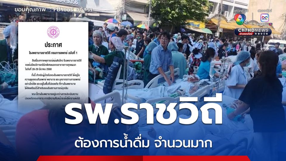 แผ่นดินไหว สะเทือนทั่วกรุงเทพฯ หลังเกิดเหตุโรงพยาบาลราชวิถีเป็น รพ.อีกแห่งที่อพยพผู้ป่วยออกจากตัวอาคารโรงพยาบาล ล่าสุด ผู้ใช้เฟซบุ๊กชื่อบัญชี เชอร์ อภัสรา แจ้งว่า รพ.ราชวิถี ต้องการน้ำดื่ม เป็นจำนวนมาก ท่านใดอยากร่วมทำบุญ บริจาคตรงประชาสัมพันธ์ให้คุณหมอ พยาบาล ผู้ป่วย และญาติคนไข้ ที่ยืนดูแลผู้ป่วยอยู่ที่ด้านนอกโรงพยาบาล