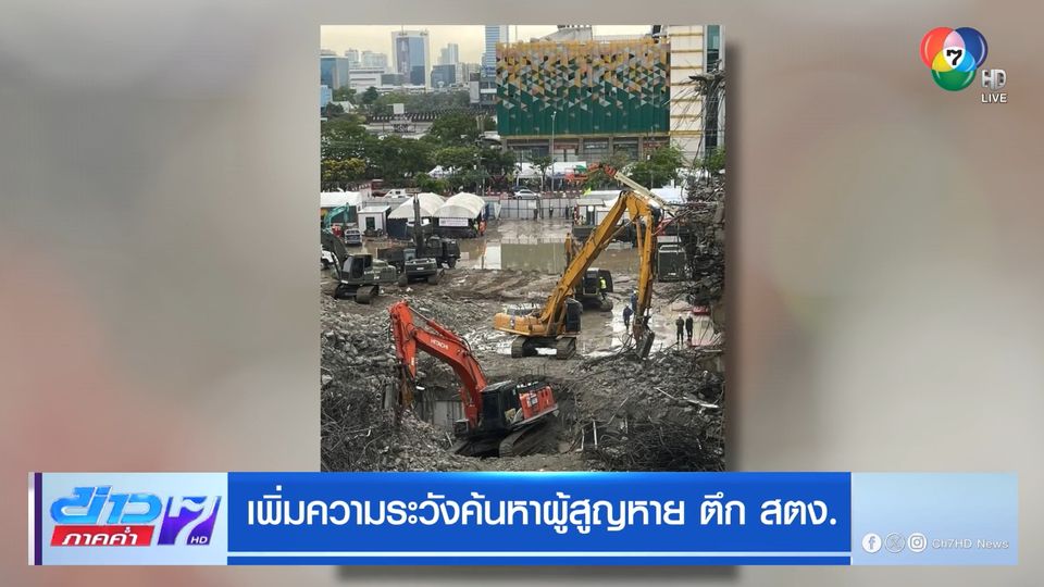 ข่าวภาคค่ำ - ทีมกู้ภัยปรับแผนเพิ่มความระมัดระวัง หลังพบพื้นชั้นใต้ดินทรุดตัว และต้องการรักษาร่างของผู้สูญหาย ซึ่งตลอดทั้งวันได้ส่งชิ้นส่วนร่างของผู้เสียชีวิต ไปให้สถาบันนิติเวชโรงพยาบาลตำรวจ ชันสูตร แต่ยังไม่สามารถระบุตัวได้ จึงทำให้ยอดผู้เสียชีวิตไม่เปลี่ยนแปลง