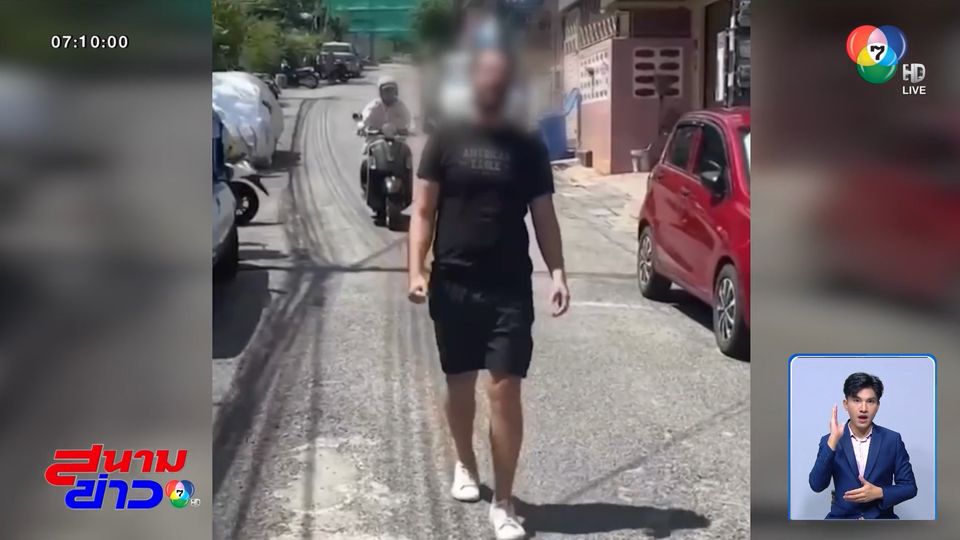 จนเขาตัดสินใจวิ่งหนี ปรากฏว่าชาวต่างชาติวิ่งไล่ตาม ก่อนสะดุดขาตัวเองล้ม ร้องโวยวายลั่นซอย แต่ยังไม่วายลุกขึ้นวิ่งไล่ตาม จนคนถ่ายคลิปต้องตะโกนบอกชาวบ้านช่วยแจ้งตำรวจให้หน่อย