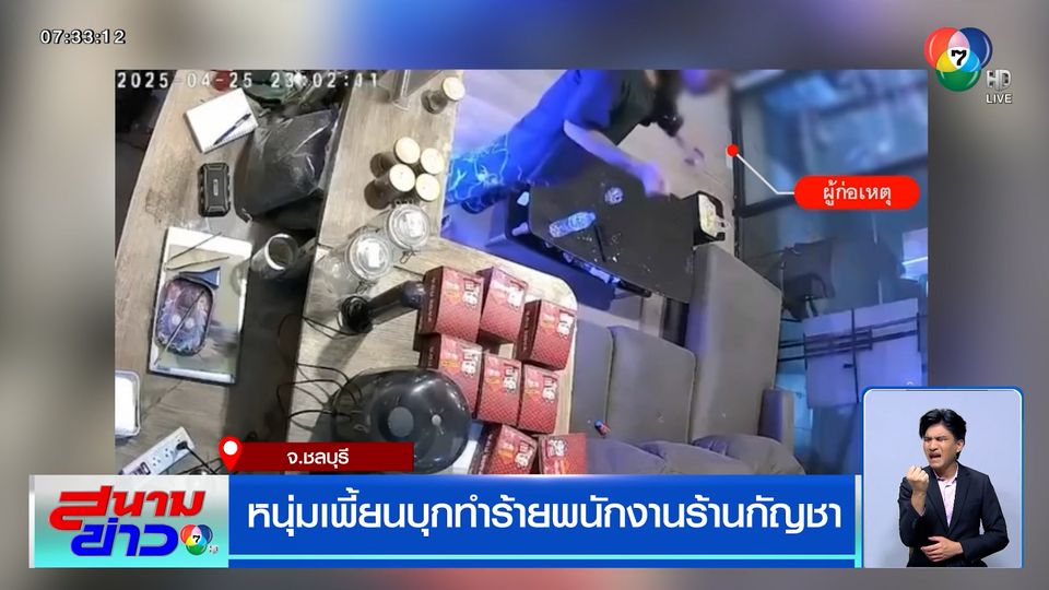 กล้องวงจรปิดภายในร้านขายกัญชาแห่งหนึ่ง ใกล้แยกโทนี่ อำเภอบางละมุง จังหวัดชลบุรี บันทึกช่วง 23.00 น. คืนที่ 25 เมษายน ที่ผ่านมา มีชายไทยคนหนึ่ง เดินเข้ามายืนในร้าน แสดงท่าทางแปลก ๆ มือสั่น ทำตามองขวาง ๆ โดยถามราคาขายกัญชากับหญิงอายุ 24 ปี ซึ่งเป็นพนักงาน พอถามเสร็จก็ไม่ได้ซื้อ เดินมาขวางเคาน์เตอร์ไม่ให้พนักงานผู้หญิงออกไปไหน