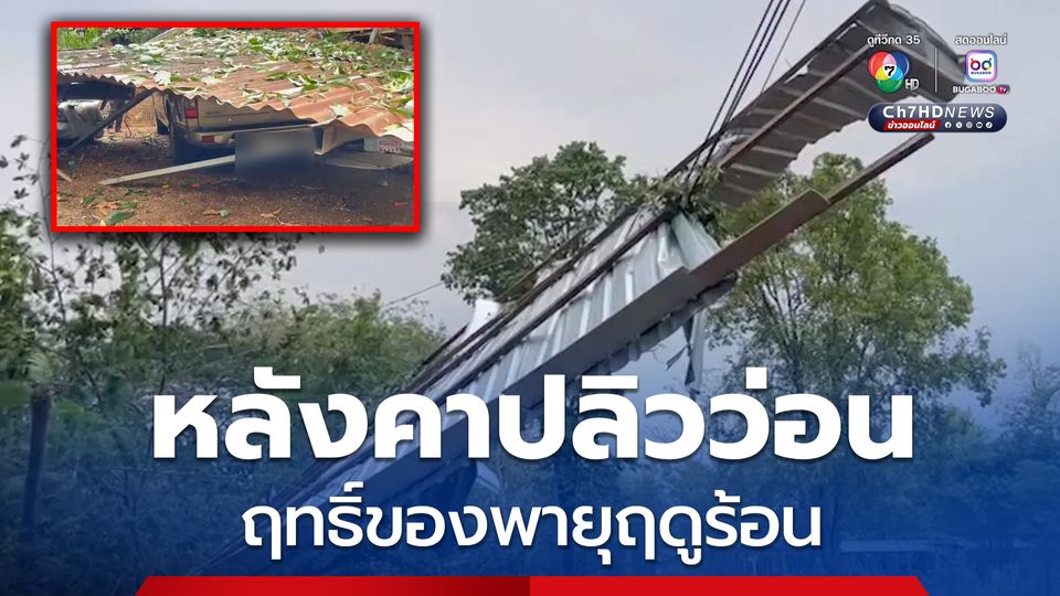 พายุฤดูร้อนถล่มจังหวัดสกลนคร หลังคาบ้านปลิวทั้งหลัง โรงจอดรถพังถล่มทับรถยนต์ เสียหายหนักนับสิบหลังคาเรือน