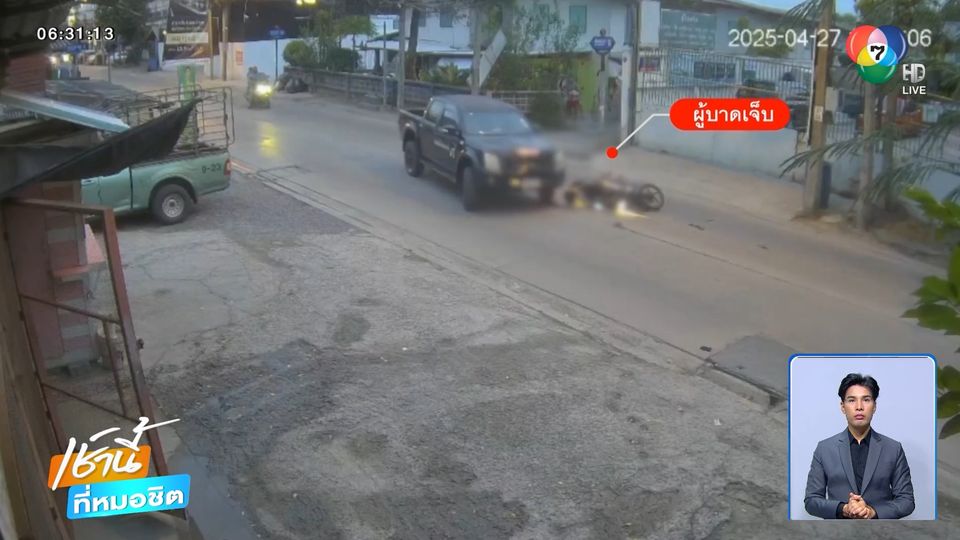 วินาทีชีวิตรถกระบะหักหลบ รถ จยย.ล้มขวางถนน