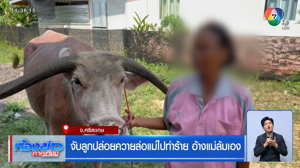 ห้องข่าวภาคเที่ยง - ลูกชายทำร้ายแม่แท้ ๆ ของตัวเอง ด้วยการปล่อยควายล่อให้ออกมาไปตามจับ แล้วลงมือทำร้าย ลาสุดตำรวจนำตัวลูกชายคนนี้ไปสอบสวนแล้ว แต่ยังไม่แจ้งข้อหา