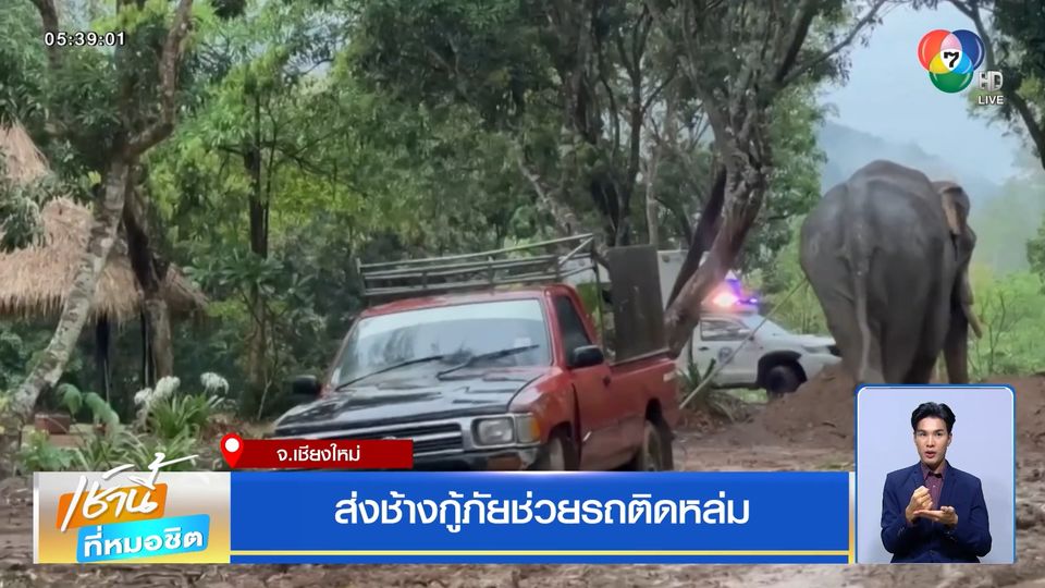 เช้านี้ที่หมอชิต - จังหวัดเชียงใหม่ วานนี้เกิดฝนตกหนักในพื้นที่อำเภอแม่แตง ถนนหลายเส้นกลายเป็นโคลนตม รถกระบะติดหล่มหลายคัน จนต้องพึ่งแรงน้องช้างช่วยลากรถ
