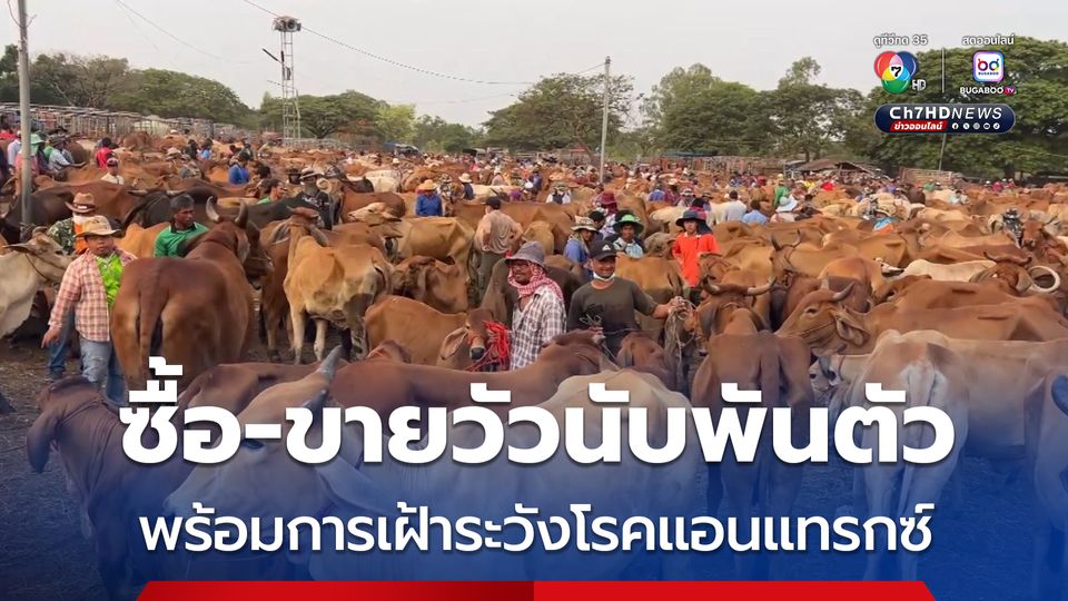 ตลาดนัดโค-กระบือ คึกคัก มีการซื้อขายวัวนับ 1,000 ตัว ขณะที่ปศุสัตว์ศรีสะเกษ ส่งเจ้าหน้าที่ตรวจสอบเฝ้าระวังวัวที่อาจติดเชื้อโรคแอนแทรกซ์