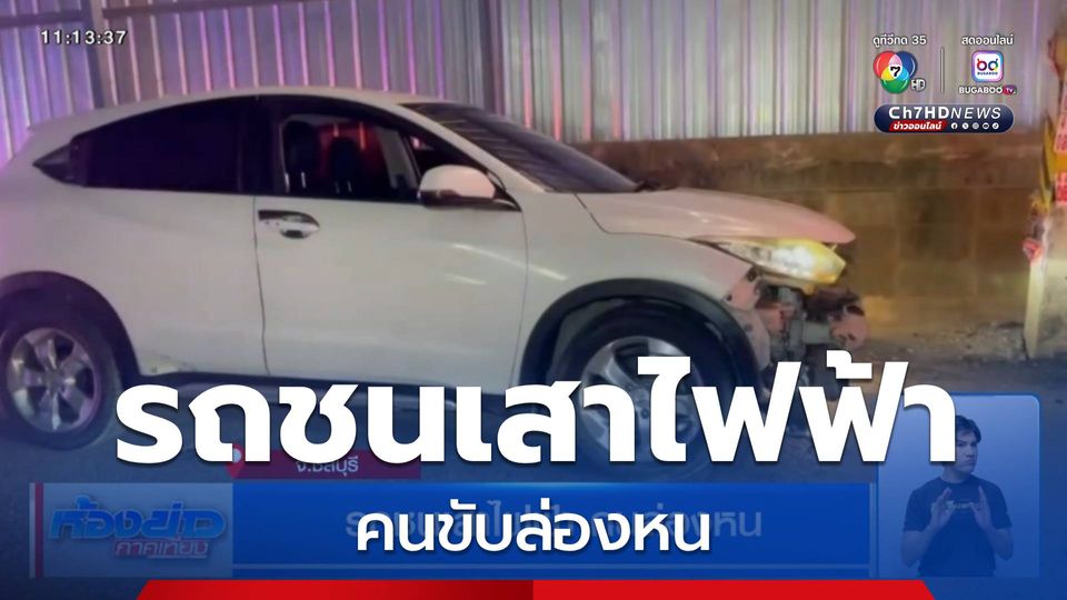 รถชนเสาไฟฟ้า คนล่องหน จ.ชลบุรี