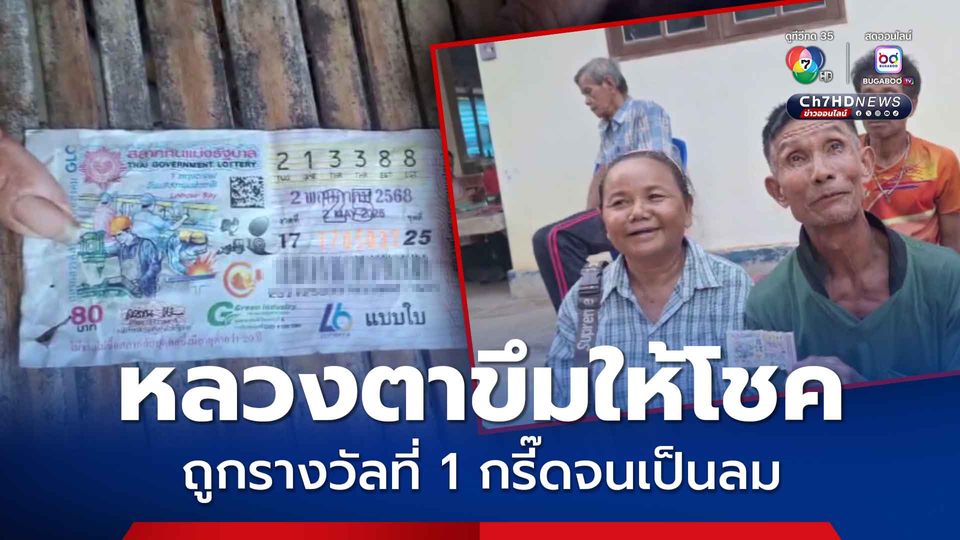 คู่สามีภรรยา โชคดี ซื้อสลากกินแบ่งรัฐบาลเพียง 1 ใบถูกรางวัลที่ 1 ดีใจกรีดร้องจนสลบ เพื่อนบ้านวิ่งมาดู พบในมือกำสลากไว้แน่น เชื่อหลวงตาขึมให้โชค เพราะเห็นเลข 88