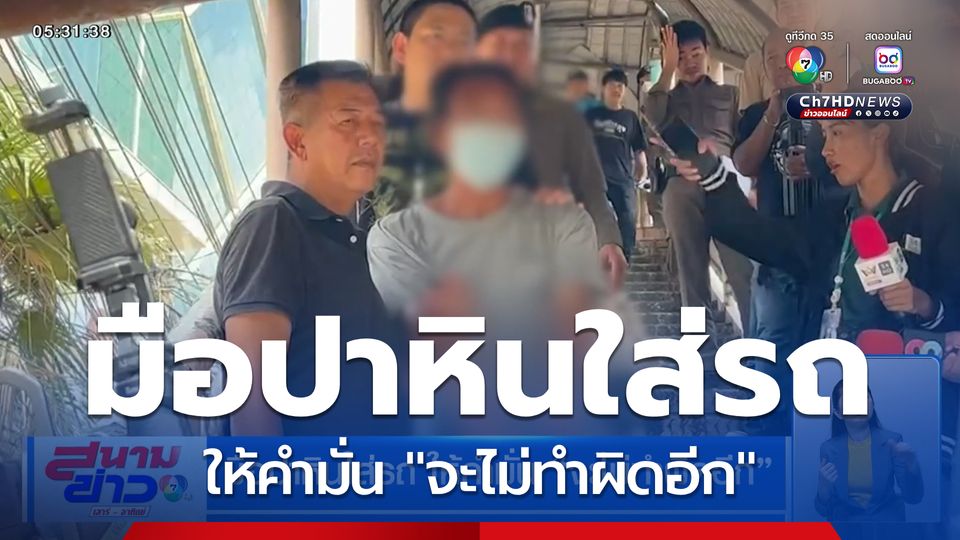 สนามข่าวเสาร์-อาทิตย์ - ตำรวจคุมตัวมือปาหินใส่รถประชาชนไปทำแผนประกอบคำรับสารภาพ โดยเจ้าตัวให้คำมั่นว่าจะไม่ทำผิดอีกเป็นครั้งที่ 14