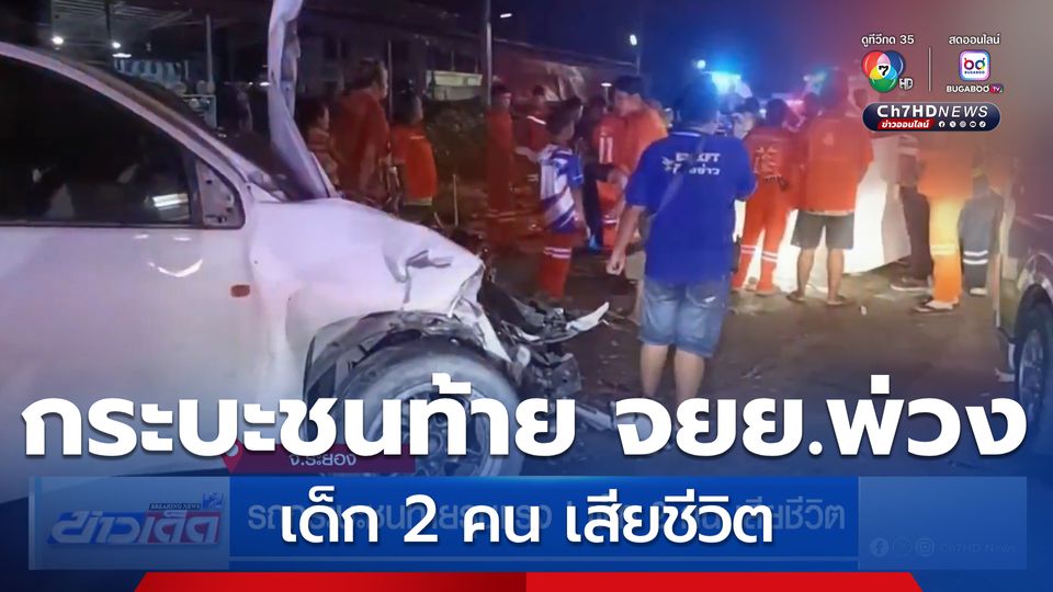 ข่าวเด็ด 7 สี - เกิดอุบัติเหตุสลดที่อำเภอแกลง จังหวัดระยอง หลังมีรถกระบะคันหนึ่งขับมาด้วยความเร็ว พุ่งชนท้ายรถจักรยานยนต์พ่วงข้าง ซึ่งมีพ่อแม่ลูก 5 คนนั่งมา ทำให้มีผู้เสียชีวิต 2 คน